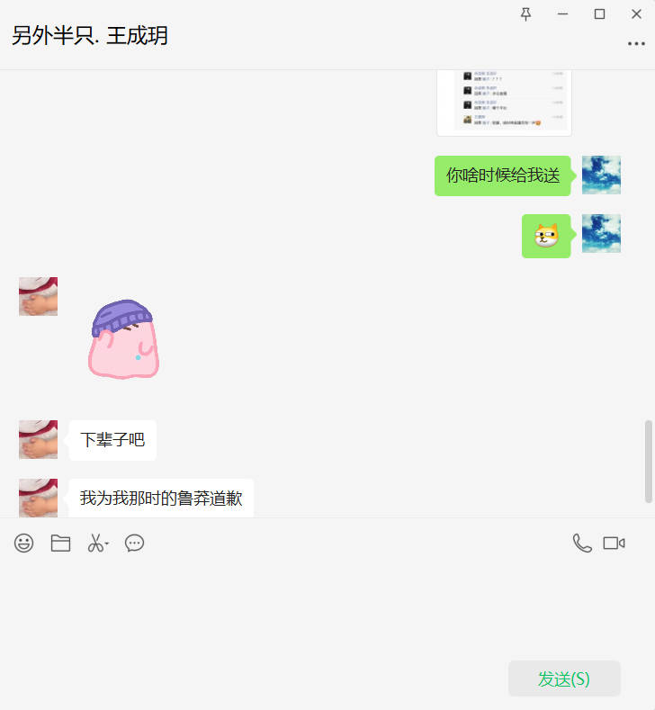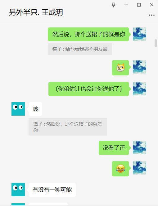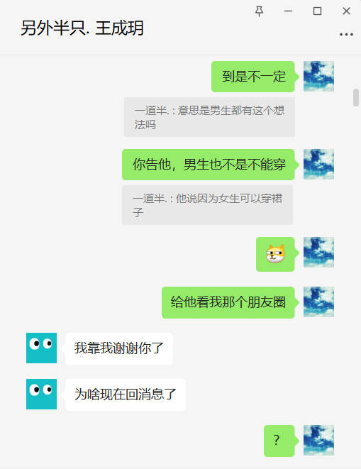 她:诶,你这话说的,我送可以啊,我送了你穿啊
