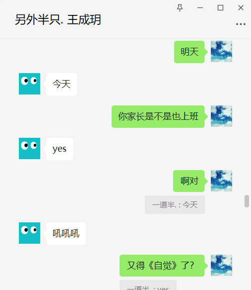 他:周末写作业了,越写越开心,高兴的不得了,就没带。