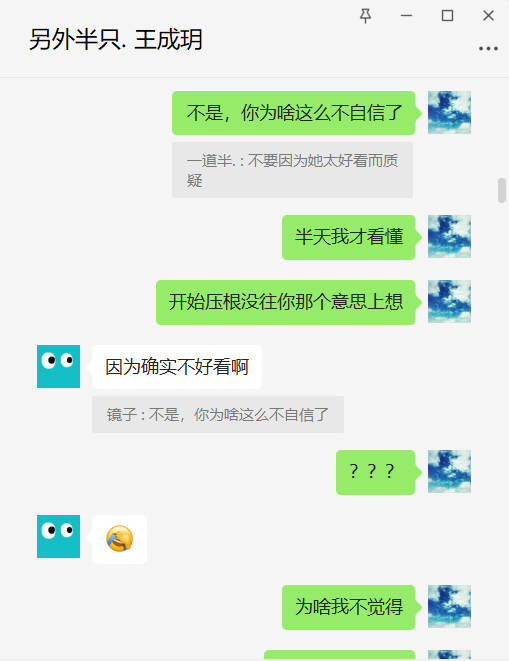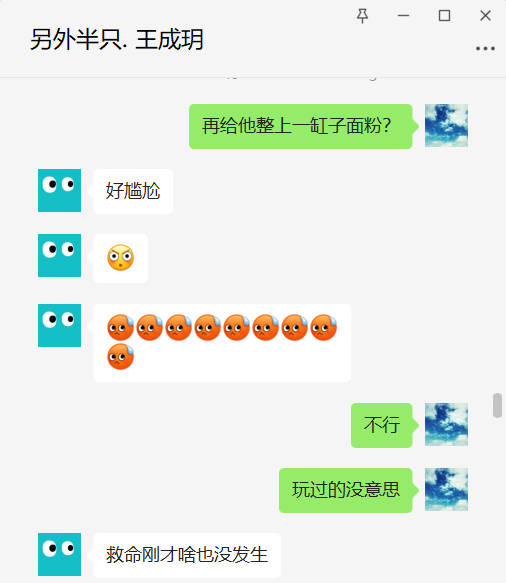 她:怎么又不按套路出牌。。。噗,我想象了一下,觉得辣眼睛