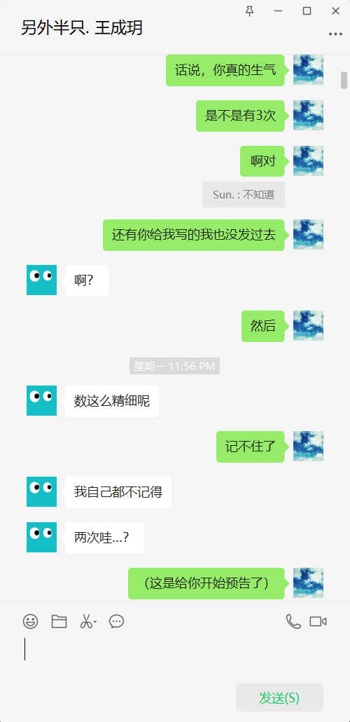 不过某些事情说起来,其实还是挺欠意的。好像确实是把你惹生气过三次?第一次纯粹就是因为又欠又没情商了,欠是欠的给你的笔“混搭”,没情商的没到最后你吼出来我都不知道你生气了。第二次,嗯,又是没情商了,开玩笑开的,然后就误会了,快上课和你开的玩笑,然后过了一节课你问我是啥意思,我还在笑着问你,记性咋突然变得这么好了,然后,嗯,又悲剧了。看着你跑出去了,然后又回来了,想说点啥又不知道说点啥,想着你回来以后骂我会不会让我舒服点,然后你回来以后啥也没说。第三次,又是欠的,直接把你照片放班群里,嗯,我也不知道我当时抽啥风了,确实挺抱歉的。$^{[5]}$