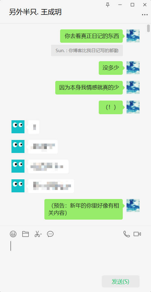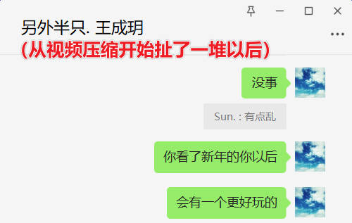 其实上边这段早就写完了,应该就草稿创建的那头几天吧。然后现在又突然能补充点内容了。就是刚放假的那天晚上,咱们是小年还上课。我网友他们正好是小年考试,第二天还要接着上。他发了张他们的时间表,然后我和他说,是不是把这张表发给你让你开心一下。最后你看到它的第一眼:“那也不能把自己的快乐建立在别人的痛苦之上吧”。当时是正好在我叔叔家,我在知乎上看视频编码,忘开小月亮了,从通知看到的你的信息。看到你这句话的第一下,我其实是懵的,我还说这是又扯到啥话题上了,我啥时候干这缺德事了?然后结果你是在说这个。我还问了下我网友,他有没有这种感觉。我网友说,他压根没觉得我有啥想法,单纯就是随手转发一下,啥也没觉得。所以。。。好佩服你,为啥你会这么善良。