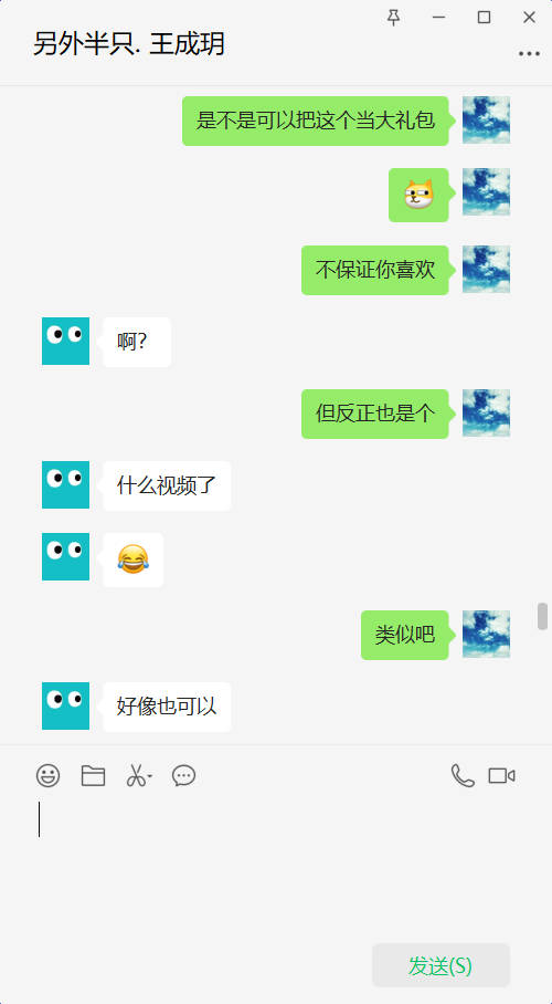 这就挺神奇的,确实是有同样兴趣的东西,但聊的时候完全不沾边,还老扯上其它类型的东西,也不知道在聊啥,反正就是聊起来了。又想起来了,问你“咱们天天在这聊啥东西了”,“天”。在聊天的时候有不太了解的内容,其实很正常,本来每个人就都有自己的兴趣,其实有时候我也就是随便说,你其实也是少有的愿意听的,挺感谢的。我也不知道我那算不算看过电脑剧,看过两三集;挺神奇的,竟然有人会成功让我在这方面做出尝试。有的时候你说的tnt一类的内容,或者剧情、小说相关的话题,我其实也完全不了解,甚至常见的套路我也是真的不知道,基本每次都只能回几个“嗯”,当个呼吸包。以后其实可以多听你讲讲,好像挺多人喜欢tnt里的某个人物的。有件自己发自内心喜欢的爱其实是经常会让人觉得,算是很幸福吧?真的愿意为它而投入精力和时间,最后的结果其实是挺有成就感的。不过好像咱俩也有一些共同的兴趣吧,比如其实一直挺好奇你咋扒的谱?听听你推荐的歌?(然后还真碰上一首真的好喜欢的)你也喜欢猫,这算不?还有,嗯,就是一直挺好奇你的小黄文?(正在逐渐不正经化)啊算了,这个不算了,有点小奇怪🐶。